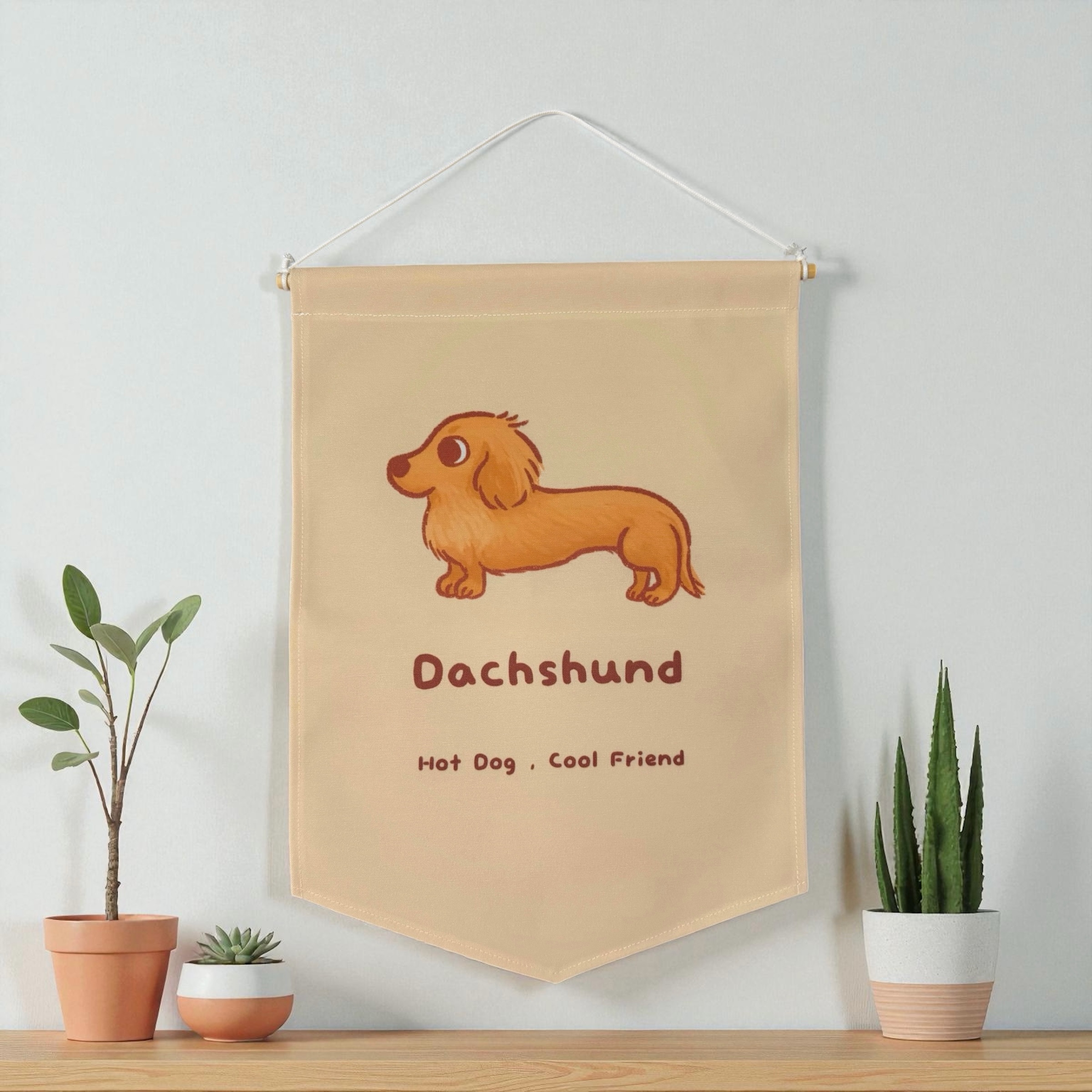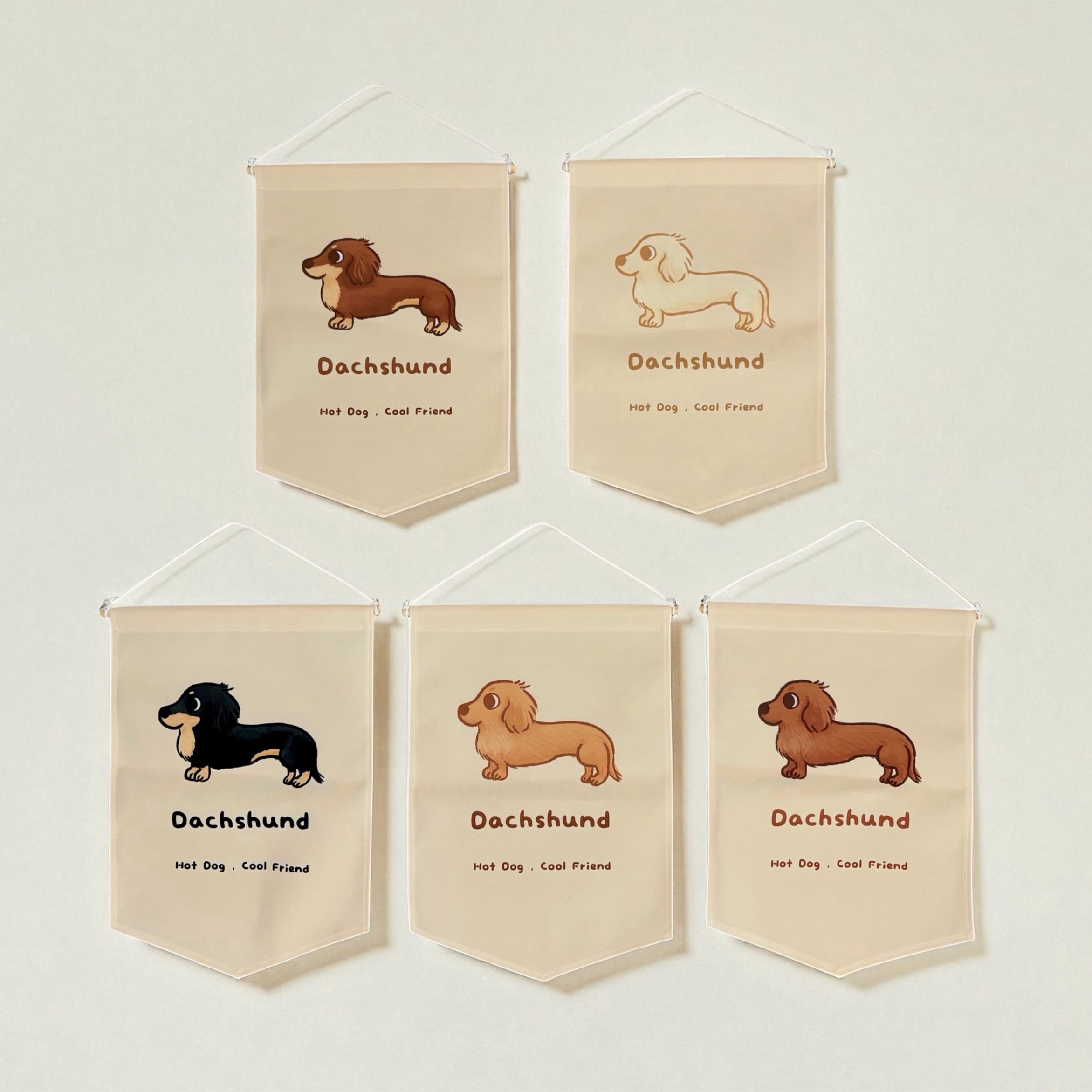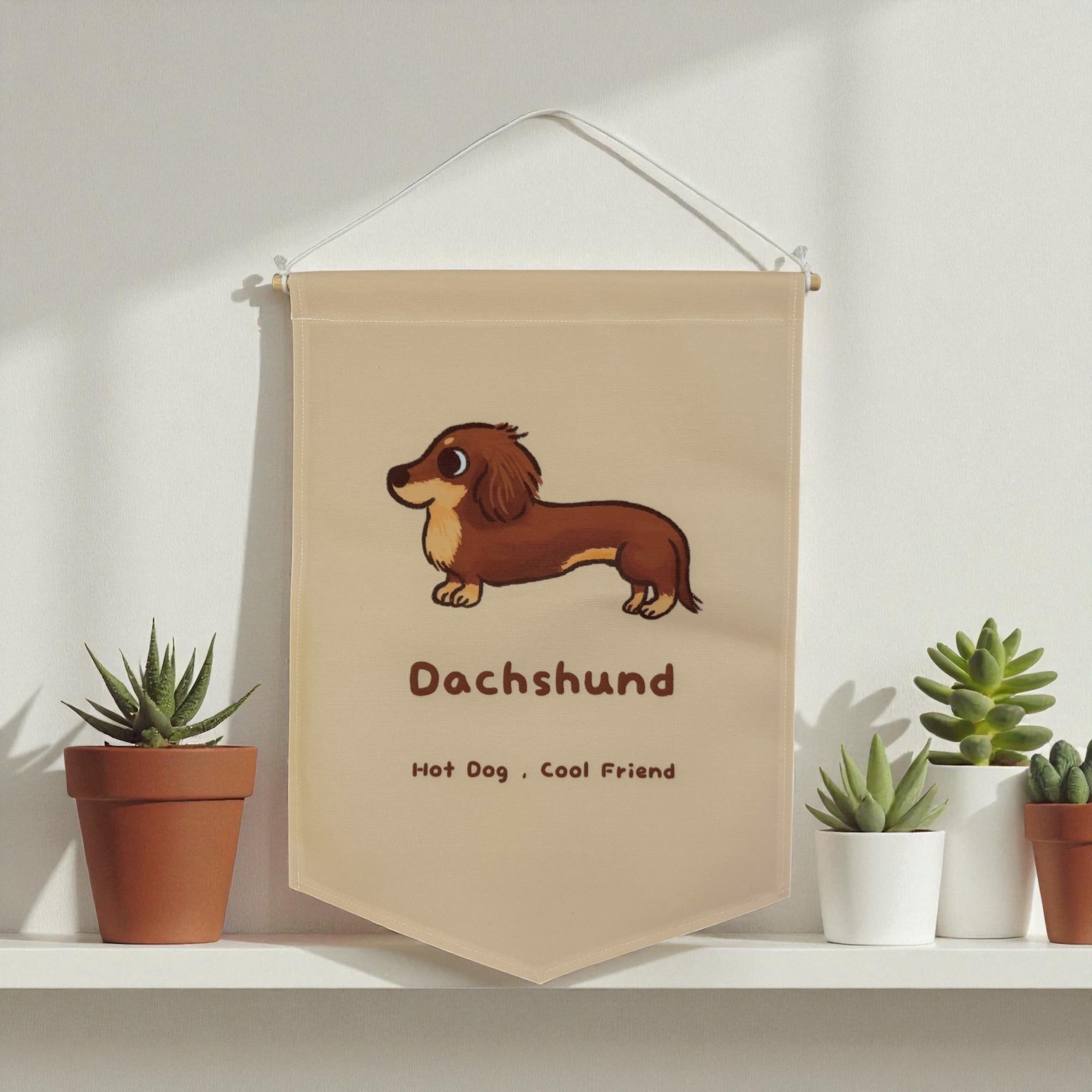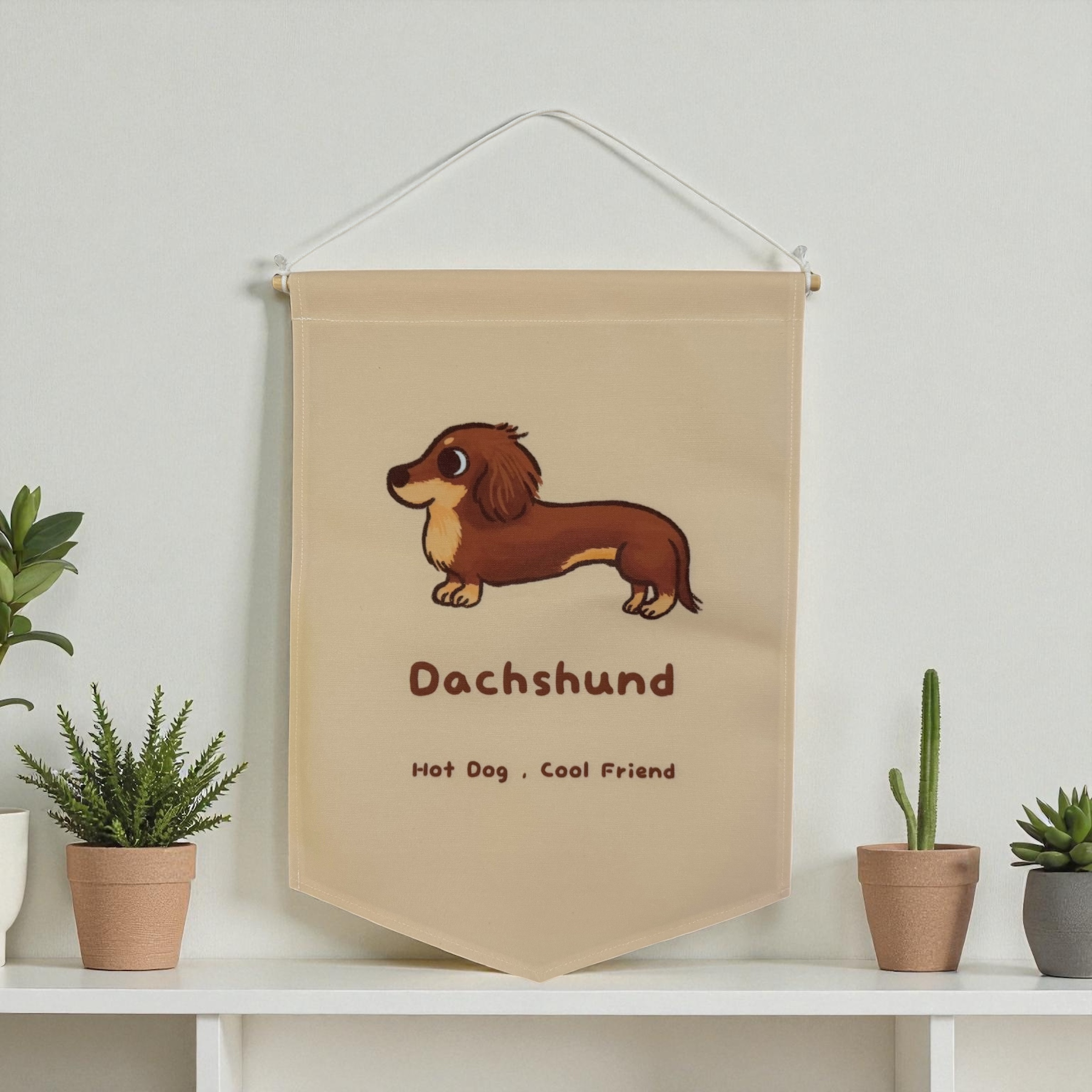 可愛的臘腸狗掛旗,掛在牆上好療癒,帶去露營也很適合~